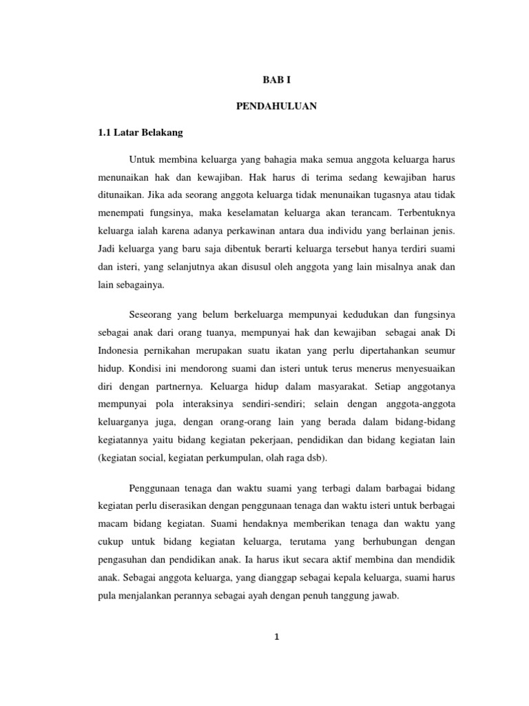 Peranan anggota keluarga yang lain, seperti kakek, nenek, paman dan anggota keluarga lain termasuk guru hanyalah bersifat mendukung tugas. Tanggung jawab merupakan kesadaran manusia akan tingkah laku dan perbuatannya yang disengaja maupun yang tidak disengaja. Termasuk ingin sukses dalam mengarungi samudra kehidupan bersama keluarga. Adapun isi dari pasal tersebut adalah begitupun suami wajib bersikap baik kepada istri sebagaimana baiknya sikap istri kepadanya. Tanggung jawab juga berarti berbuat sesuatu sebagai perwujudan kesadaran akan kewajibannya. Peran suami dalam rumah tangga adalah sebagai seorang pemimpin dan penanggung jawab dalam rumah tangganya. Sepasang suami istri yang menikah secara islam juga perlu menjalani kehidupan berumah tangga sesuai tuntunan islam. Ia tidak hanya seorang imam tetapi juga pendidik. Setelah sepasang suami istri bercerai, ada umumnya hak pengasuhan anak jatuh pada ibunya dan sementara itu tanggung menafkahi ada pada. Baca juga dan ini adalah salah satu kunci kebahagiaan dalam berumah tangga, suami menyadari kewajiban sebagai seorang suami. Ajaran islam seharusnya dipraktikkan dalam seluruh aspek kehidupan, kemasyarakatan, ekonomi maupun politik. Lalu tanggung jawab yang bagaimanakah yang akan dipikul suami setelah terucapnya ijab qabul? Meski disebut pemimpin dalam rumah tangga, suami tidaklah sama dengan bos yang dapat memerintah istrinya sesuka hati.